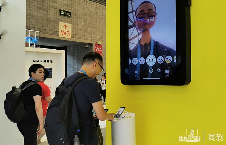 在W4馆周到君玩到了前段时间非常火爆的Snapchat魔法变脸。