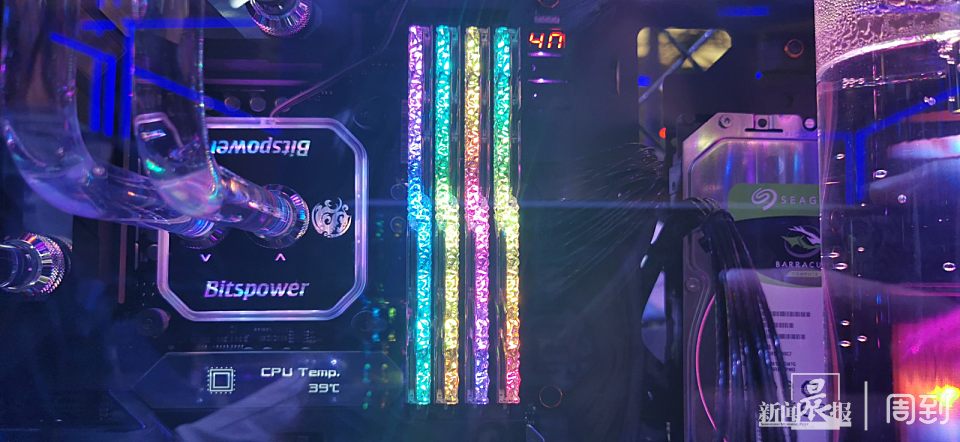 上图是由攀升提供的主机设备,RGB水冷散热器真是把灯光玩出花来。