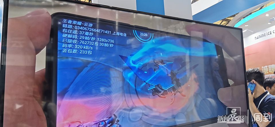 华为的展台主要展示华为云的服务,因为有华为云的强大支持,才使得游戏的速度变得更快,玩家可以秒下游戏安装包,甚至可以极为顺畅地在线游戏。