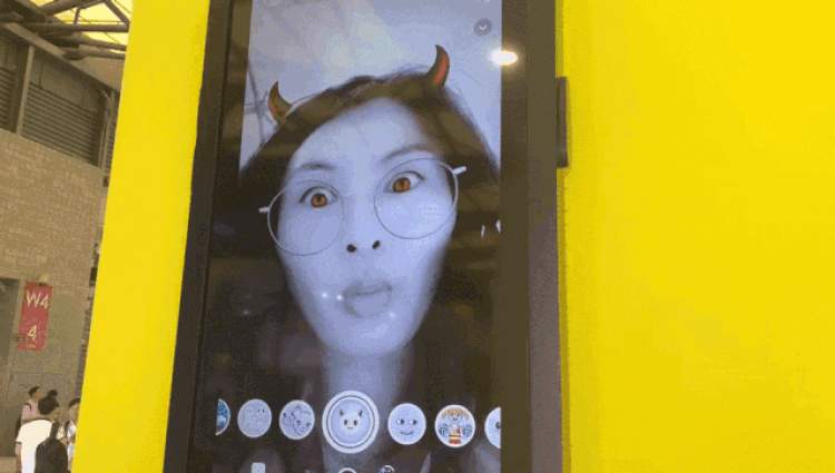 展台虽然不大,体验项目也只有体验snapchat AR人脸滤镜,但不少人在展台前玩的不亦乐乎。