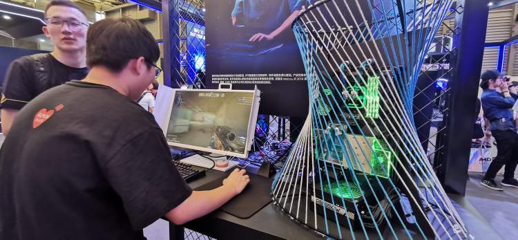 周到君在展台看到了一款专为射击类游戏而生的显示屏,据工作人员介绍,一般情况下玩cs射击时,枪会抖三抖,但由于显示器的设置,这款显示器中枪的动作会更稳,因此游戏的操作感也更好。