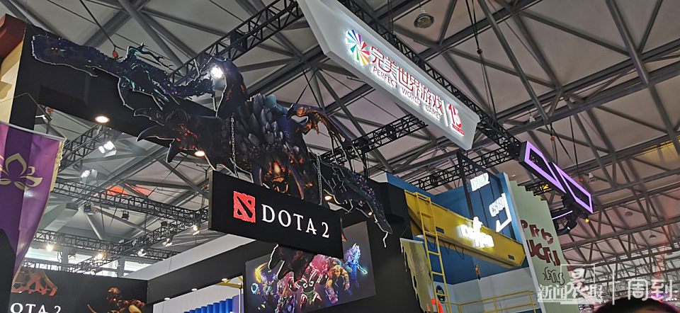 Dota2也来到今年的ChinaJoy上,在完美世界展台有一面墙完整记录着Dota2中国队在历年的ti大赛上的荣誉。