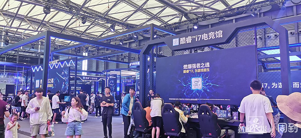 在英特尔的酷睿i7主题电竞馆,可以看到各种各样的高配置显示屏、处理器、键盘和鼠标。