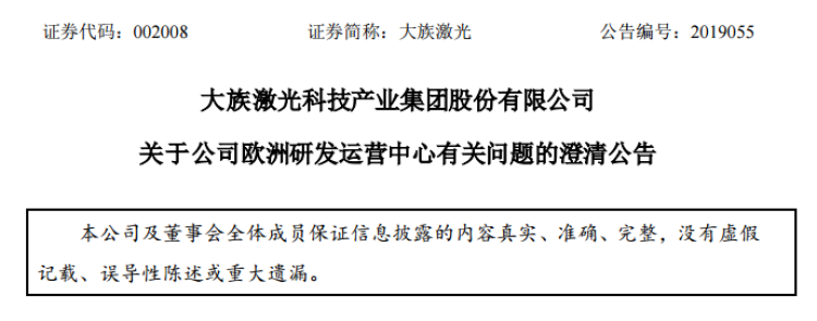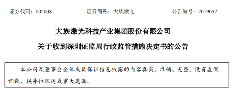 与此同时,大族激光收到深圳证监局的行政监管措施决定书。