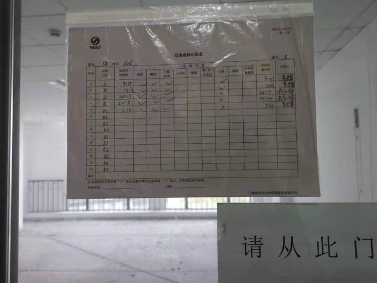 正如赵女士所述,记者在“母婴之家”位于静安区江场三路的注册地点看到,这里的办公室已经空空如也。办公室的大门贴着物业公司的“空屋巡检记录表”。