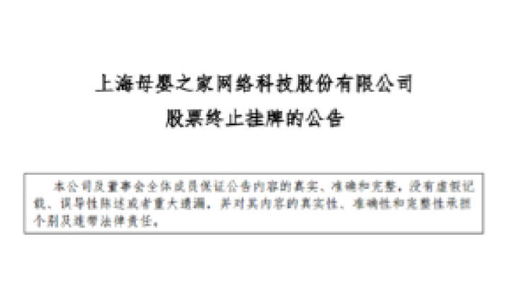 但是,据母婴之家披露的2017年年报,该公司2014年至2017年出现连续4年亏损,随后,其股票简称由“母婴之家”更名为“ST母婴”。2018年10月31日,上海母婴之家网络科技股份有限公司因未披露《2018年半年度报告》被终止挂牌。