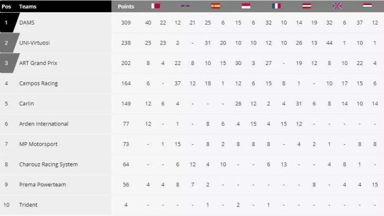 想想舒马赫在F1第一年一次领奖台都没上过,米克在匈牙利已经表现得很不错。再提供一些数据大家自己分析吧,冲刺赛米克至少从未被超越,一直强势阻挡着日本车手松下信治。再则,虽说F2的赛车一样、引擎一样、轮胎一样,硬碰硬比的就是车手能力,但米克所在的车队Prema Powerteam确实很不给力,至今倒数第二。
