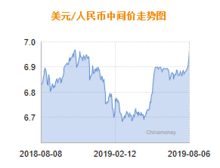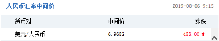 今早,人民币兑美元中间价下调458点(见下图),最新中间价报6.9683。