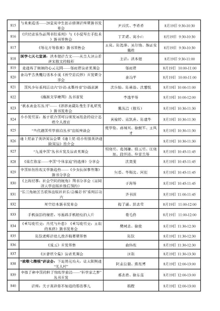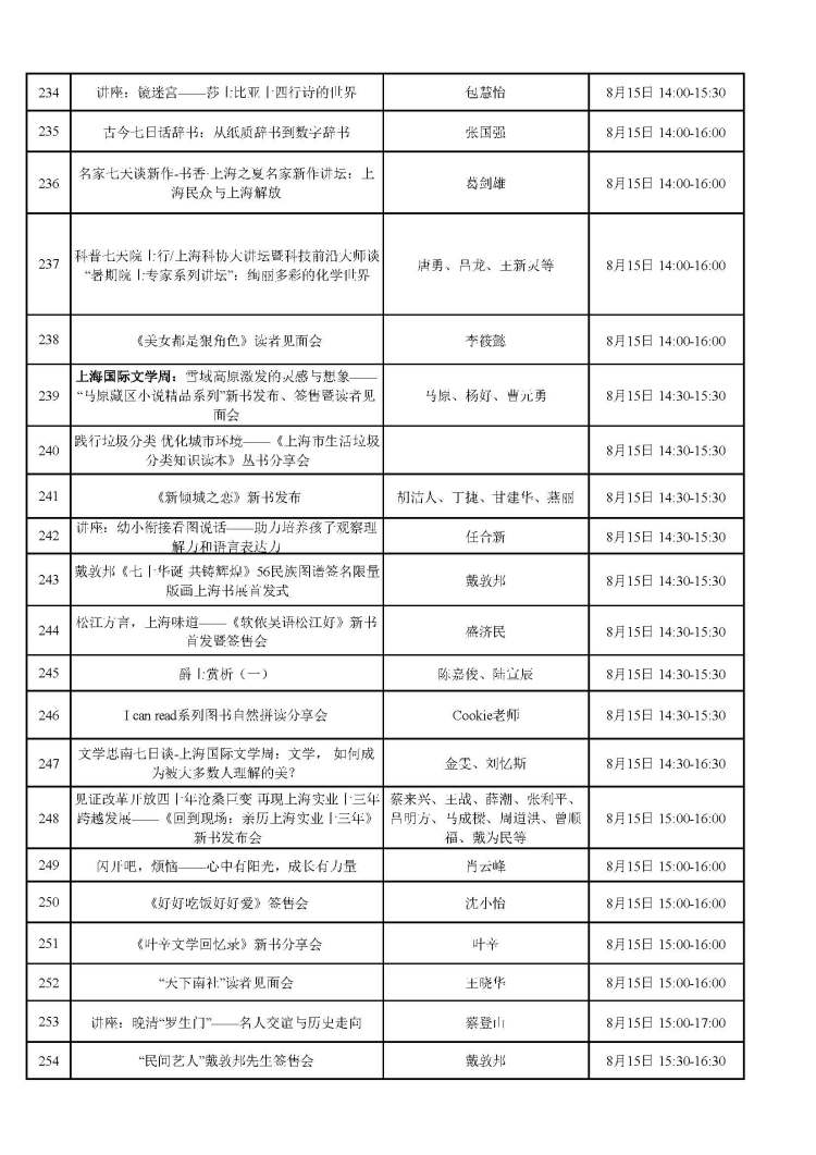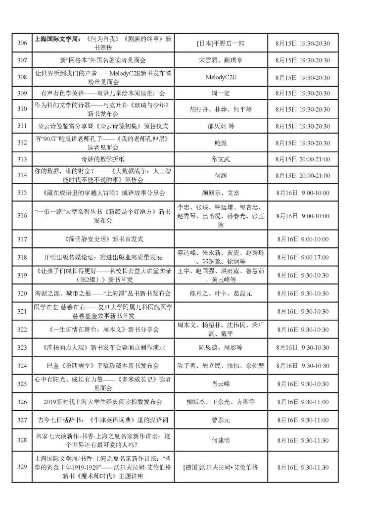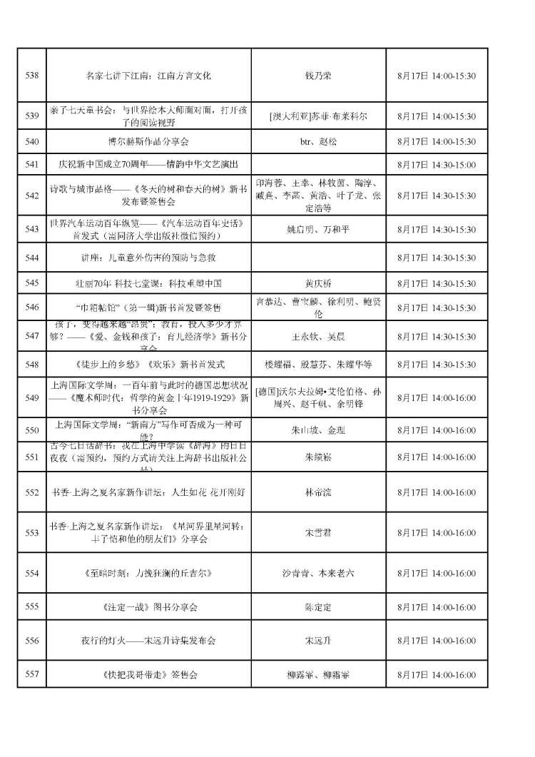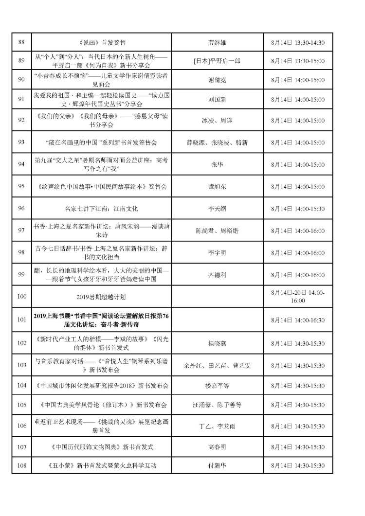 逛展必备!2019上海书展千余场活动都在这里啦,快来看看吧 徐颖 实习生 张晨璐 顾佳妮 2019-8-06 来源:周到上海 2019上海书展暨“书香中国”上海周即将于8月14日至20日在上海展览中心举办。 周到君为大家整理了书展活动的时间表,快来看看吧。 来源:周到上海 作者:徐颖 实习生 张晨璐 顾佳妮 赞一个 (0)