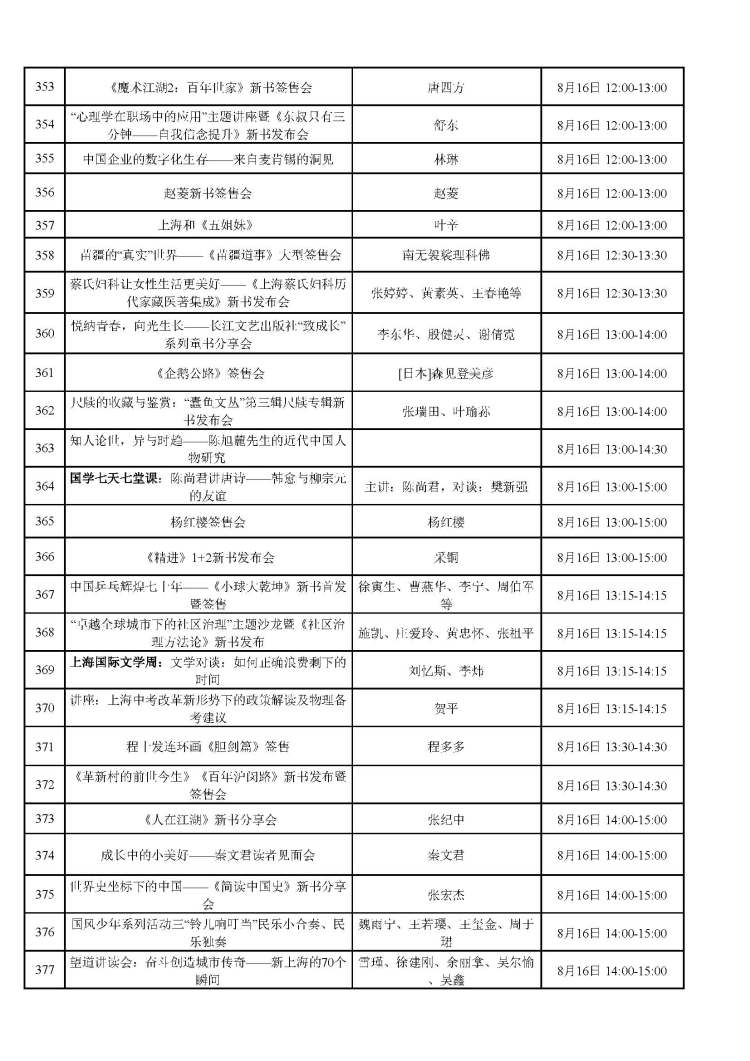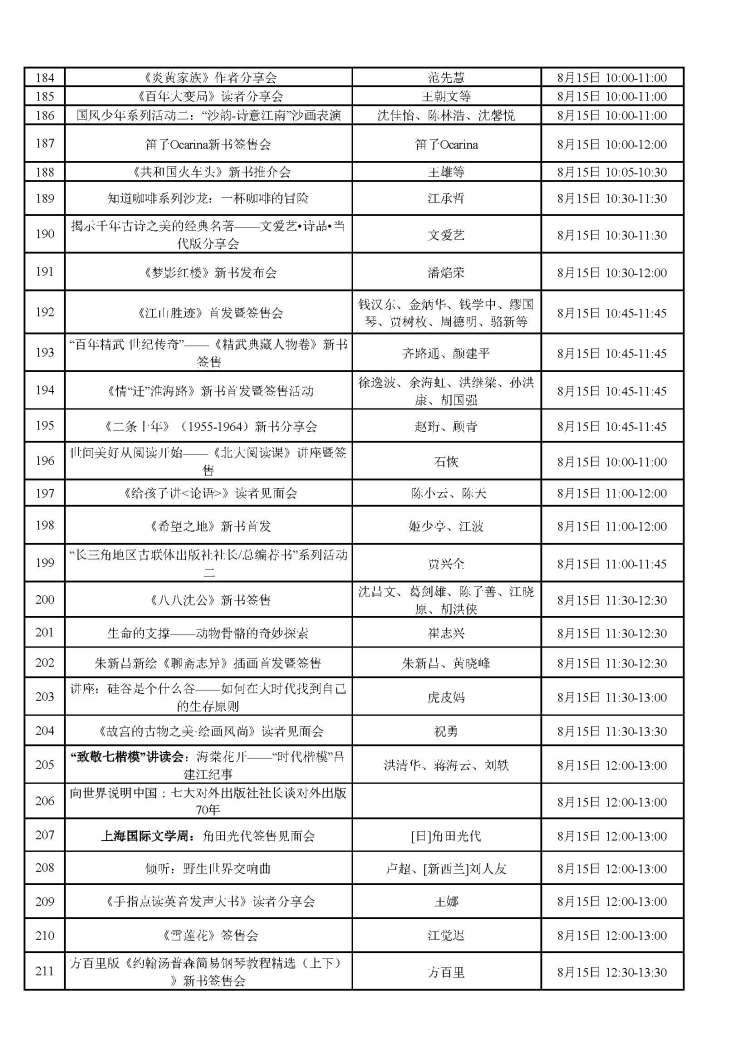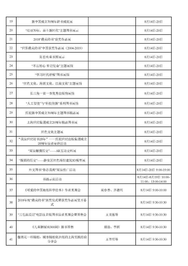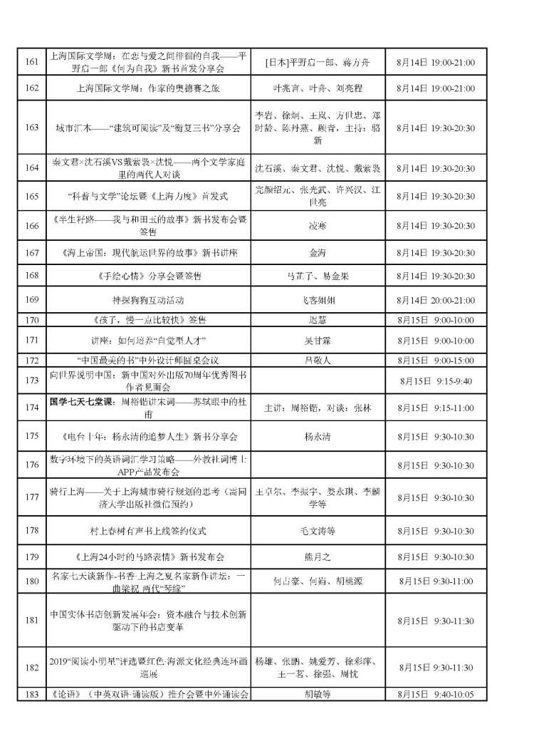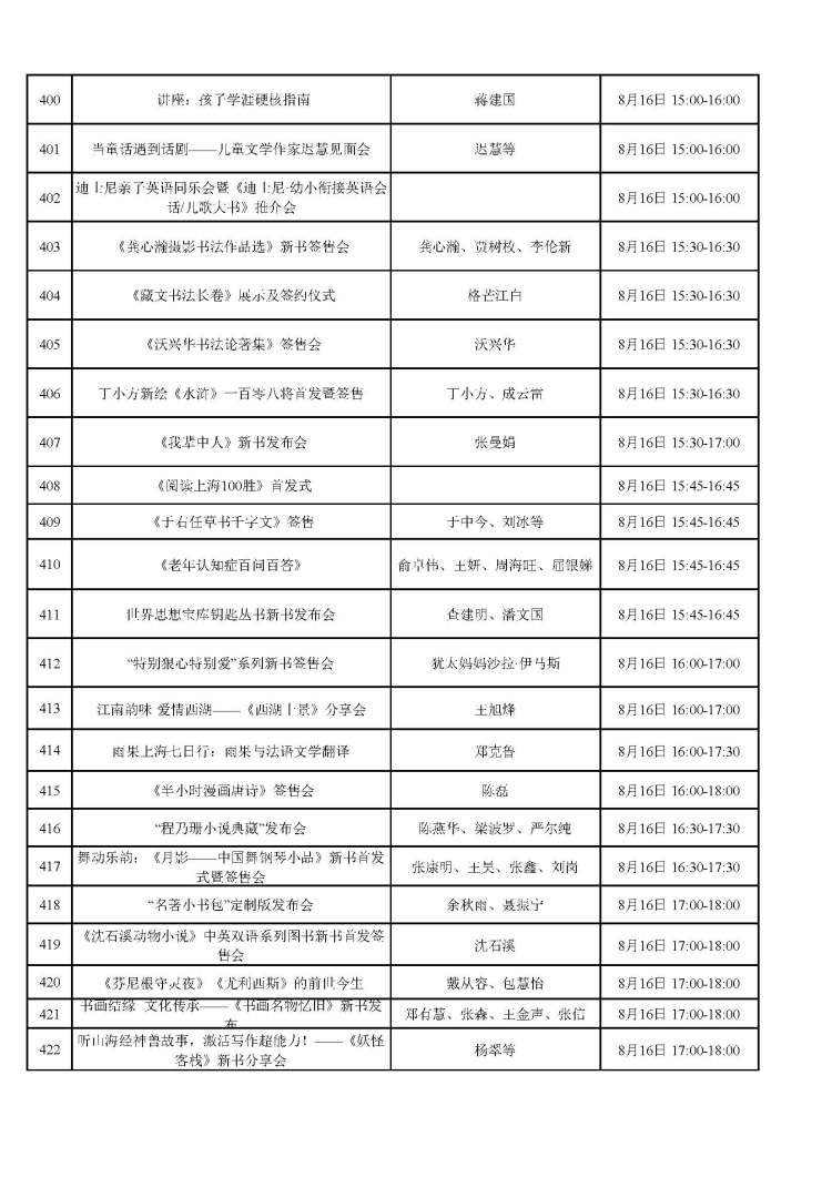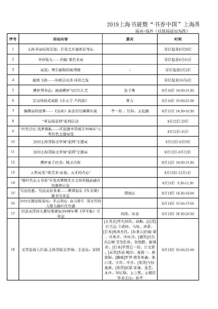 逛展必备!2019上海书展千余场活动都在这里啦,快来看看吧 徐颖 实习生 张晨璐 顾佳妮 2019-8-06 来源:周到上海 2019上海书展暨“书香中国”上海周即将于8月14日至20日在上海展览中心举办。 周到君为大家整理了书展活动的时间表,快来看看吧。 来源:周到上海 作者:徐颖 实习生 张晨璐 顾佳妮 赞一个 (0)