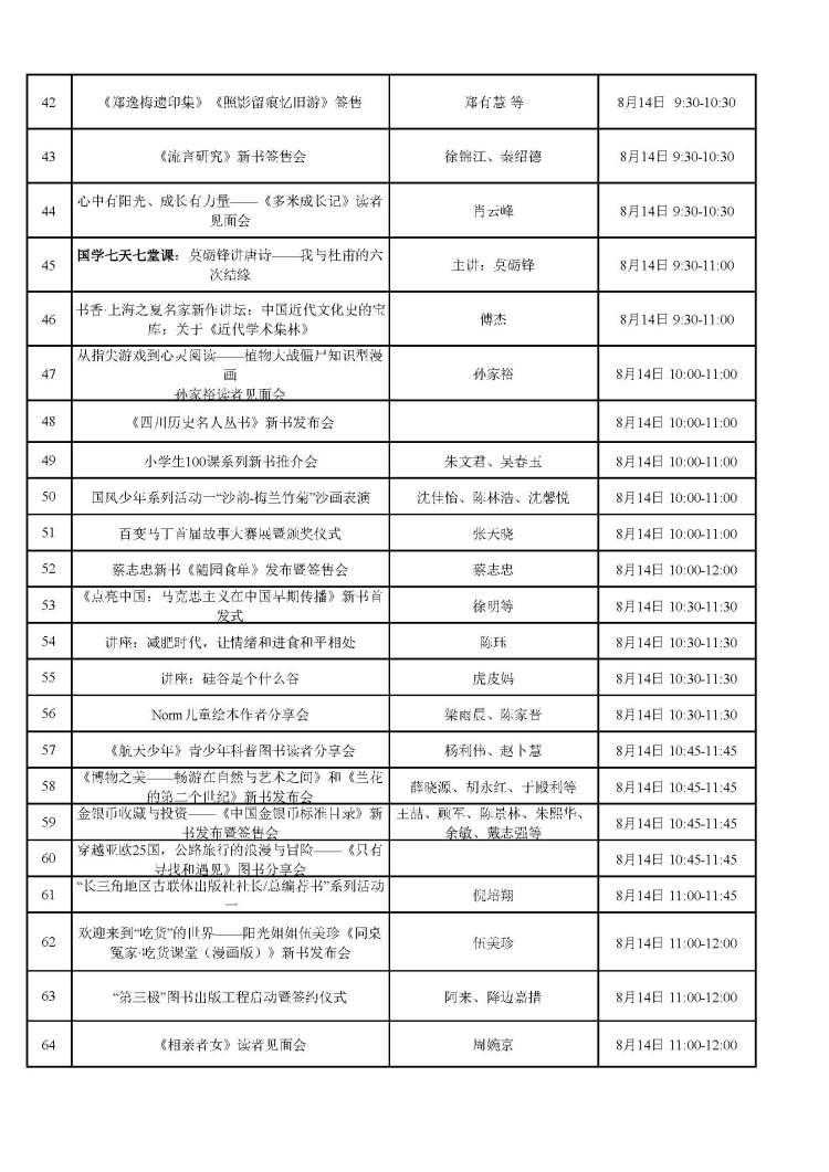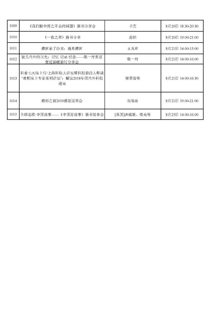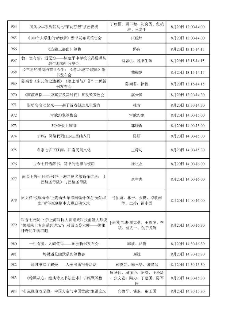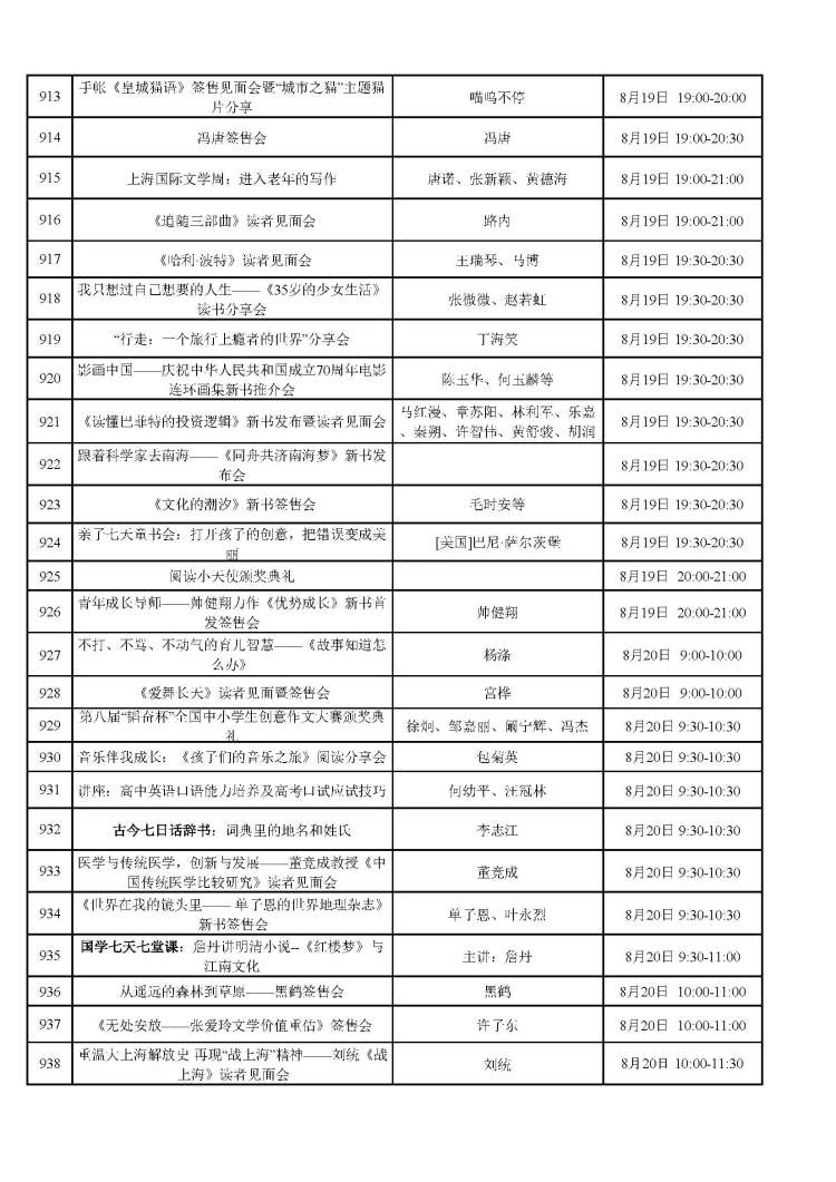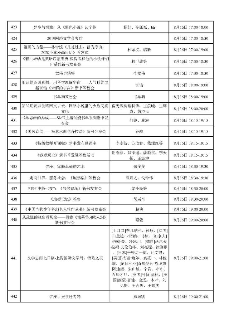 逛展必备!2019上海书展千余场活动都在这里啦,快来看看吧 徐颖 实习生 张晨璐 顾佳妮 2019-8-06 来源:周到上海 2019上海书展暨“书香中国”上海周即将于8月14日至20日在上海展览中心举办。 周到君为大家整理了书展活动的时间表,快来看看吧。 来源:周到上海 作者:徐颖 实习生 张晨璐 顾佳妮 赞一个 (0)