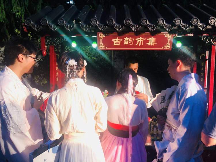 “罗衣何飘飘,轻裾随风还。”今天晚上,步入金山区石化街道辖区的荟萃园,在“滨海华韵–我们的节日•七夕”游园会现场,百余名青年褪去了日常服饰,身着飘逸的汉服,共同体验古人过七夕的雅趣。