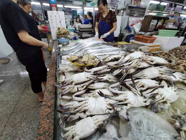 海产品摊位十有八九在卖梭子蟹、条虾