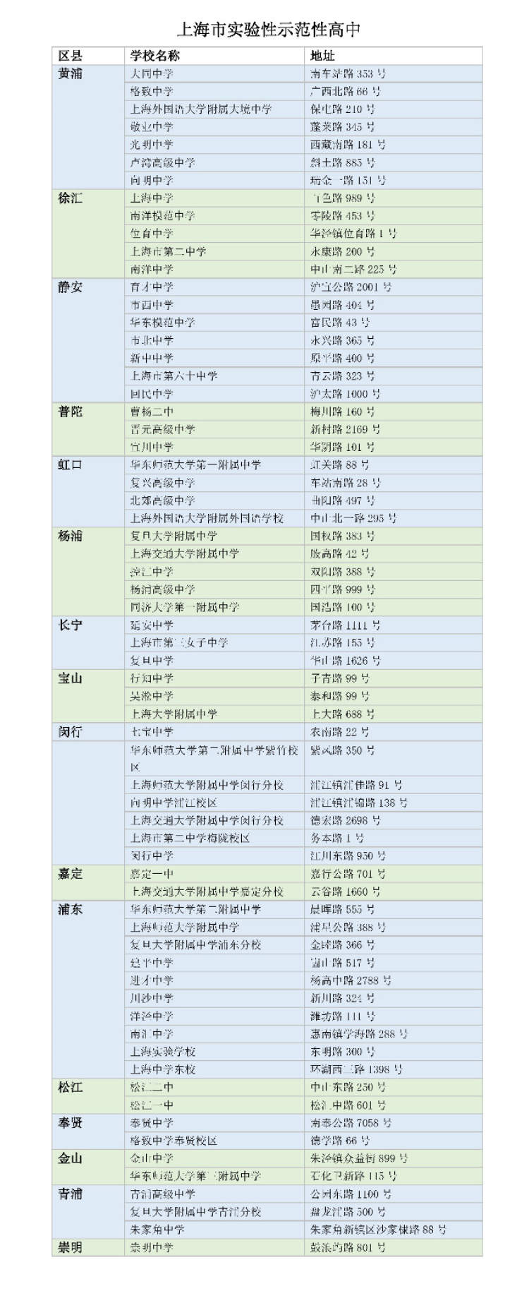 附录:本市市实验性示范性高中及特色普通高中名单