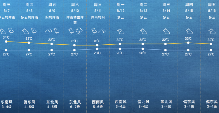 9-11日本市将有明显的风雨天气。
