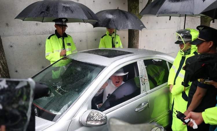 据报道,当天上午,在位于首尔城北区日本驻韩大使官邸前,韩国公民团体“爱国国民运动大联合”的一名成员将车直接停在了日本大使的官邸前,阻止日本大使上班。