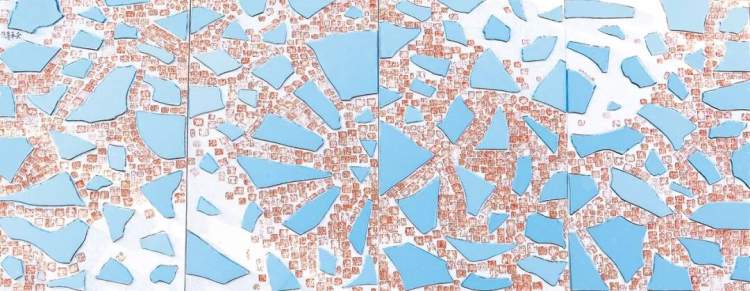 A:方寸之间的篆刻是很有趣的,但是不易被人发现,于偌大的展厅中小小的印章更有些不适合。所以我用很多印章拼成大的印章或图案,想让观众在远处第一眼就被形式所吸引,继而走近细看每一方印章的细节。鸟虫篆的装饰趣味很强,更像是一幅画,所以创作大尺寸印屏作品的时候我选用鸟虫篆作为表现手法。想让人们更直观的对篆刻有一个感受,无论是否懂篆书,都会如看画一样。我喜欢方寸之间的气象万千,也喜欢方寸外的大千世界。