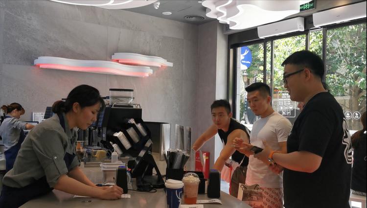 开业第二天,虽然有时店内的椅子上坐满了人,但总的来说人流不是很大,没有像“某茶”一样人从众地排长队。