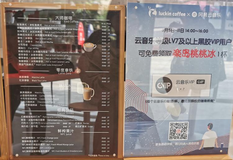 菜单和全国其他家瑞幸咖啡门店大致相同↓