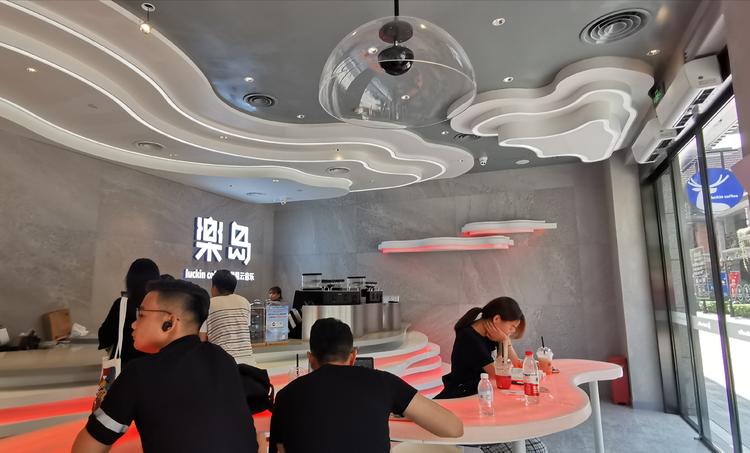 这家店的杯托也是定制的,目前处于楽岛的推广阶段,因此全国门店都有这一杯托,但一段时间之后,这一红色杯托只有楽岛一家使用。