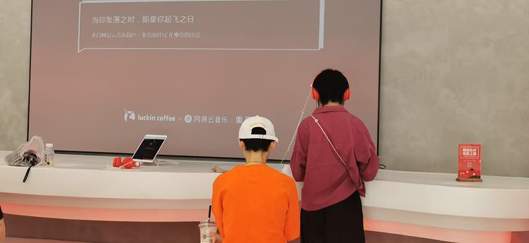 蓝色的Luckin Coffee(瑞幸咖啡)和红色的网易云音乐一起开了家名为“楽岛”的咖啡馆,似乎正应了那句“自古红蓝出CP”。