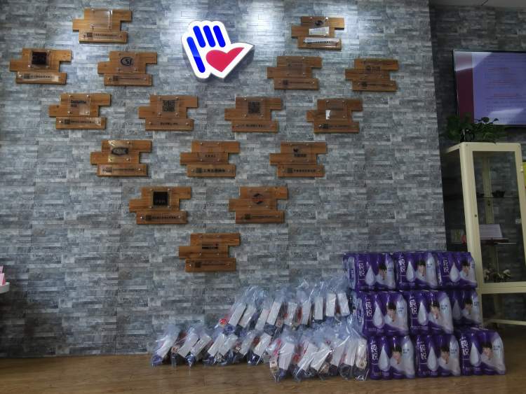 在慈善超市里分为三个区域:爱心捐赠区,你可以把八成新的衣服、物品、摆件等捐到这里,工作人员经过筛选、清洗之后会放在店里出售;爱心义卖区,大家都可以来这里选购,一般价格都会比市场低一些,出售后的资金会再用来购买帮困的物资;慈善帮困区,慈善超市会为周边社区的困难群体发券,然后他们可以在这里凭票领物。当被问及一般来这里捐赠的人有多少的时候,工作人员告诉我们:“一般换季的时候来这里的人比较多,尤其以周边居民为主,很多人会捐赠都还没有拆吊牌的衣服。这里还会有很多企业的人过来,成批的捐赠物资,每年玉佛寺的僧人也都会来这里行善好施。”这里有一面感谢墙,上面写有这些爱心人士和企业的信息,而还有很多人一直在默默付出,不留姓名,日复一日,年度一年。