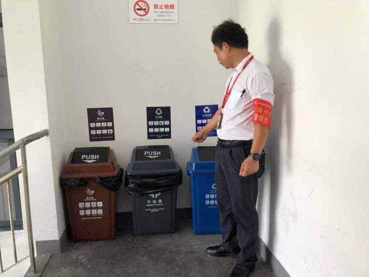 在商务楼宇企福天地,周到君看到,每个楼层都有垃圾分类收集容器。“原先,每个工位基本都有垃圾桶,后来,我们将这些垃圾桶都撤了,改在公共区域设置分类垃圾桶。此外,在茶水间、每个楼层的楼梯间设置分类收集容器。”楼宇所属物业公司相关负责人介绍。