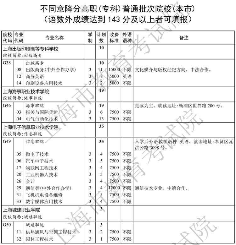 高职(专科)普通批次录取已经结束。录取结果查询通道已经开通,参加高职(专科)普通批次招生录取的考生,可登录“上海招考热线”网站查询录取结果。