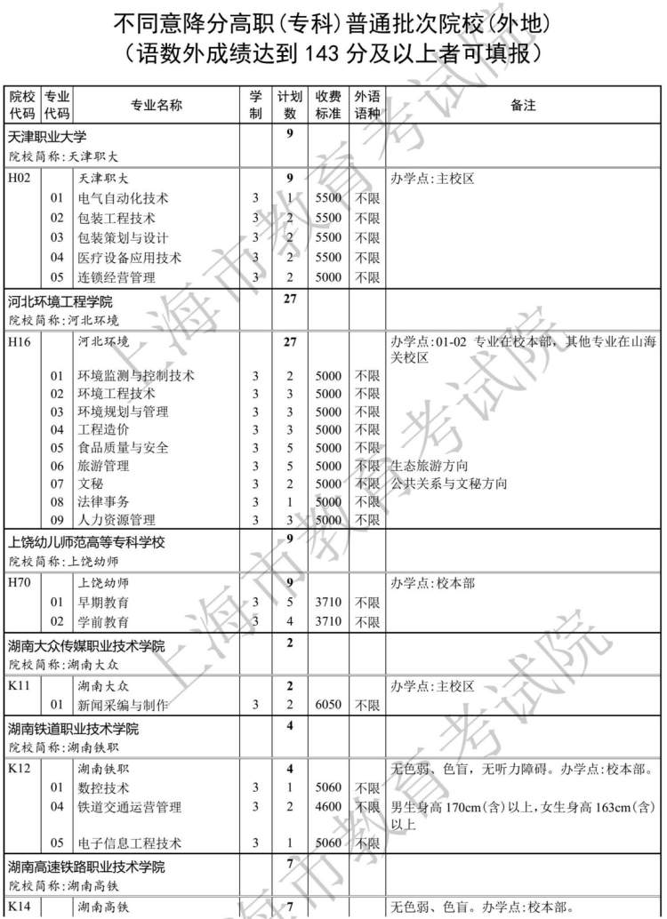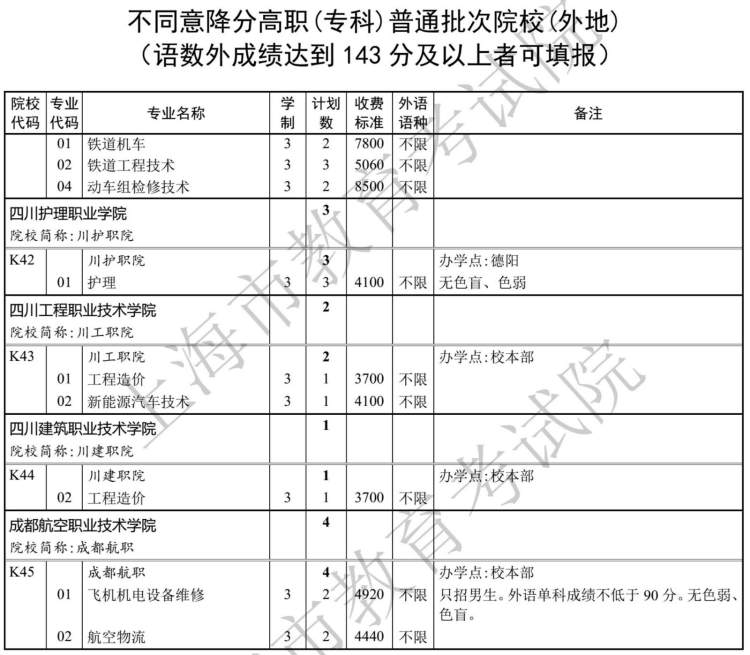 高职(专科)各批次征求志愿填报院校缺额计划表如下: