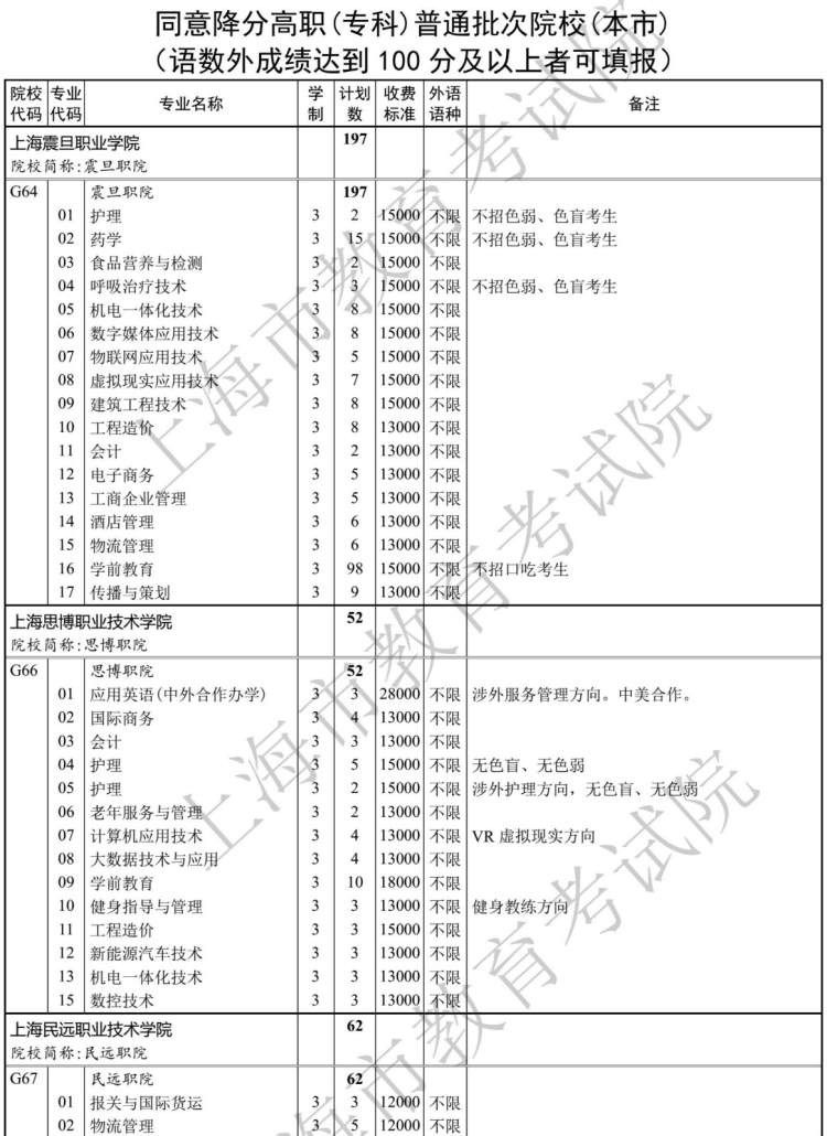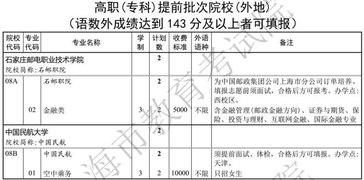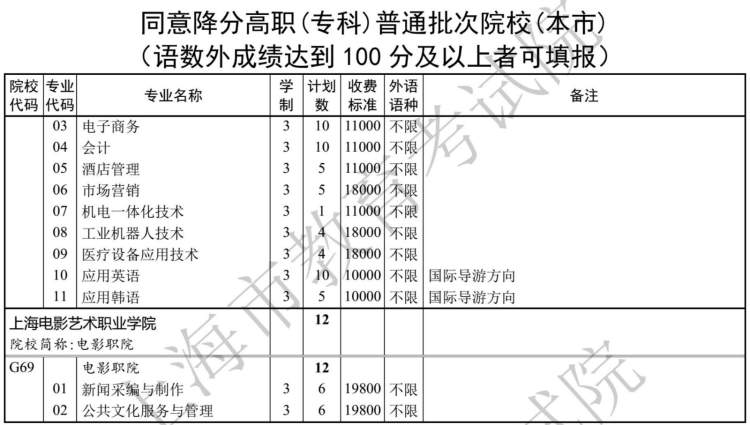 市教育考试院透露,经审定,2019年上海市普通高校招生高职(专科)各批次征求志愿录取控制分数线为100分。