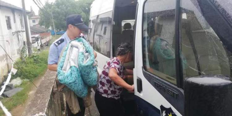 8月9日下午15时许,松江分局新浜派出所协同居委会组织独居孤老转移至新浜镇敬老院安置,躲避台风。