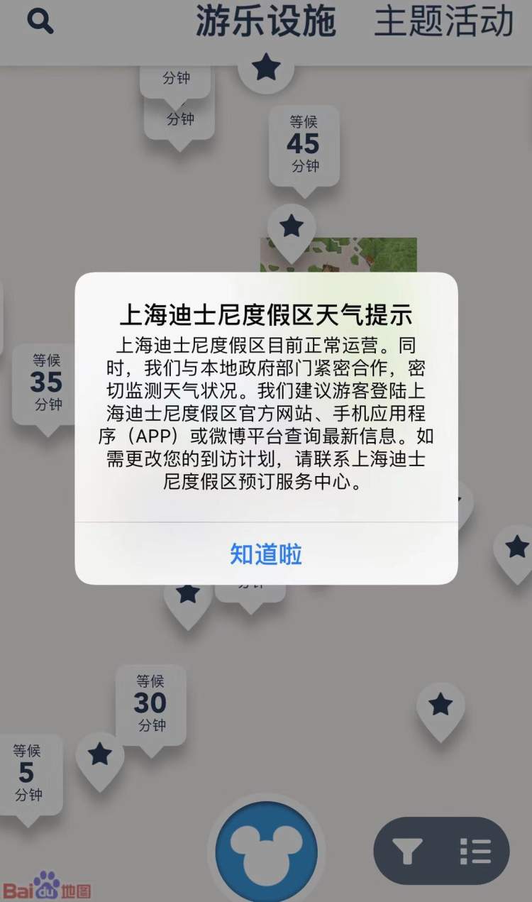 迪士尼乐园明暂不闭园,但可能关闭户外景点和演出 郁文艳 2019-8-09 来源:周到上海 截至周到君发稿,上海迪士尼度假区暂未宣布明天会闭园,只表示,在强风、大雨及雷电期间,户外景点和演出会暂时关闭。有游客注意到,今天,星愿湖上的充气唐老鸭已经“不见”了,应该是被收起了。 ■上海迪士尼度假区APP上的提示。 上海迪士尼度假区提示说,“在强风、大雨及/或雷电期间,上海迪士尼度假区可能会暂时关闭户外的景点和演出。” 目前,星愿湖上的充气唐老鸭已经被收走。此外,今晚的夜光幻影秀也将取消。 上海迪士尼度假区所在的上海国际旅游度假区介绍,度假区防汛指挥部将与度假区应急联动中心紧密沟通,度假区防汛预案与大客流应急预案密切衔接,做好极端天气下的客流疏散管理。 来源:周到上海 作者:郁文艳 赞一个 (0)