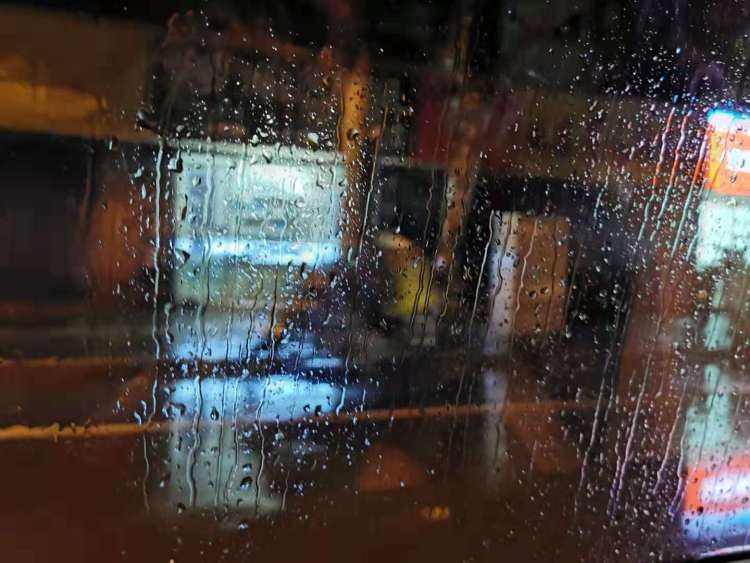 晚上7点半的风雨中,苦等公交车急着回家的上班族