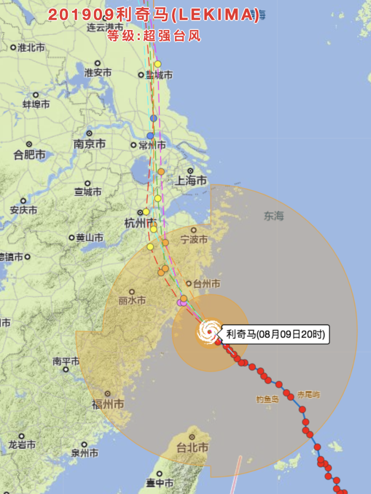 今年第9号台风“利奇马”的十级风圈开始触陆。就在今夜,或者明天凌晨,它即将登陆浙江温岭一带。
