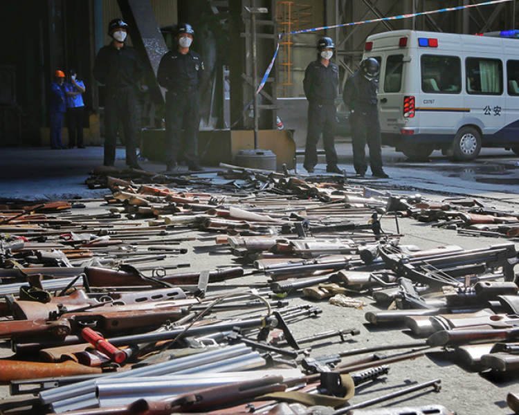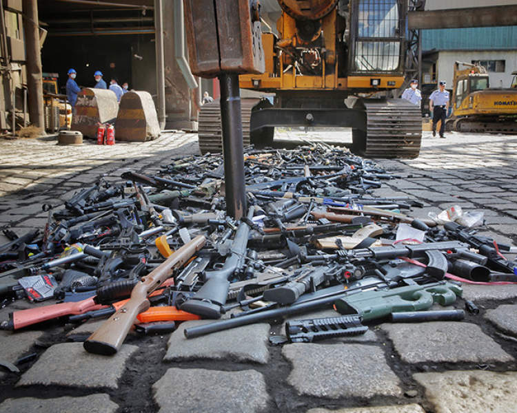 今天上午,上海警方对在打击整治枪爆违法犯罪专项行动中收缴的非法枪支、管制刀具进行了集中销毁。
