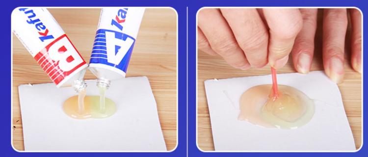 所谓 AB 胶,其实就是拿到手的是 A 和 B 两个成分,使用的时候需要混合搅拌。