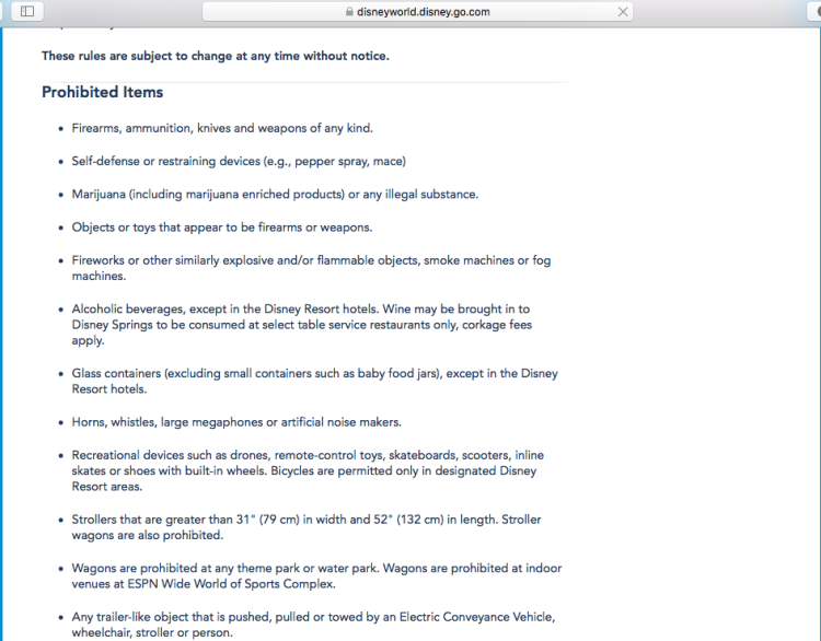 上海迪士尼乐园也并不是从开园就有不得携带食品入园的规定的。2016年开园之初,是允许游客携带密封的食品入内的,2017年11月15日起修改了游园须知,禁止游客携带任何食品入园。修改游园须知之初,有很多游客不清楚规定已经修改,不得不按照迪士尼规定丢弃携带的食物或者吃掉这些食物。