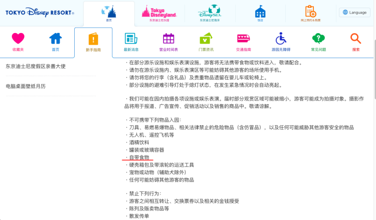 ■东京迪士尼乐园不得自带食物的规定。
