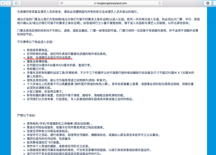 ■香港迪士尼乐园不得携带食物的规定。