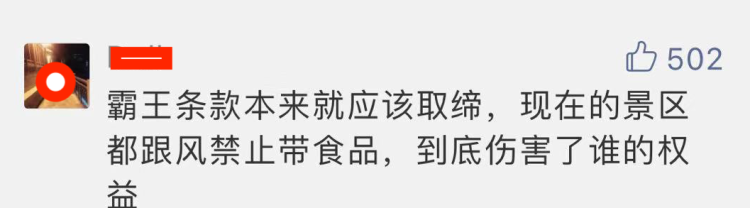 一部分游客认为这是霸王条款,而且,园内餐饮价格太贵;不让游客自带食品,目的其实为了拉动园内消费。