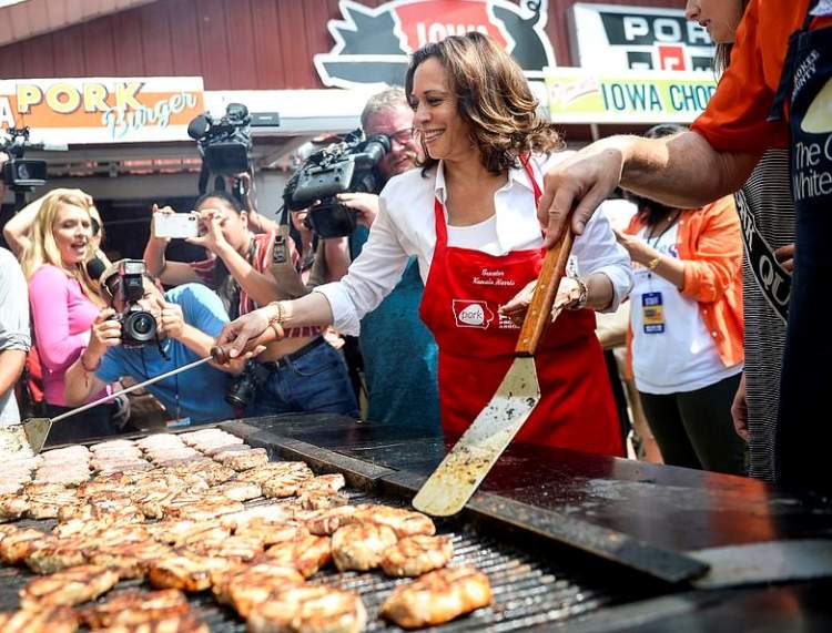 有“女版奥巴马”之称的加州参议员卡玛拉•哈里斯则烤起了猪排……