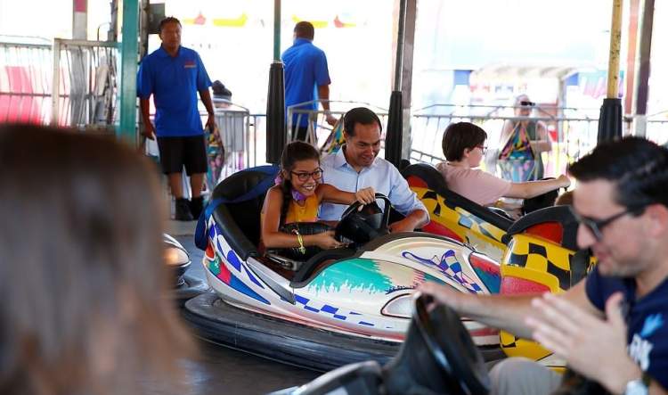 前住房和城市发展部长朱利安•卡斯特罗则和女儿玩起了碰碰车……