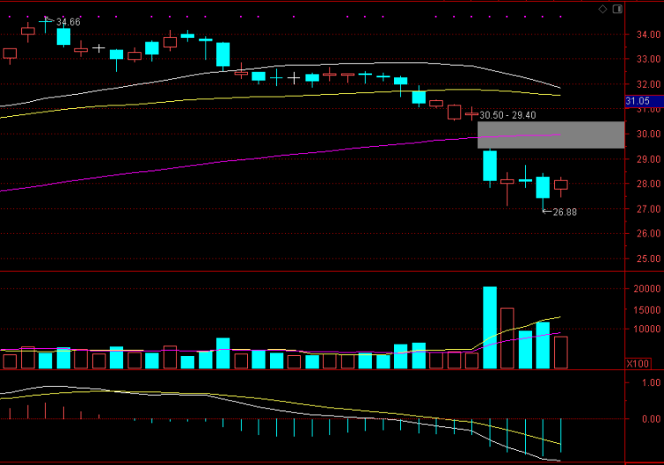 从技术面观察,随着A股市场整体偏弱,伊利股份短期和中期走势均不乐观,该股从7月31日开始(见上图),宣告跌破颈线位置,股价沿着陡峭下行的5日均线持续下跌,下跌过程中有成交量配合,下跌成交量是此前震荡整理期间的1倍多。由于当下短线乖离率偏大,该股今日虽有反弹,但成交量配合不理想,因此后市空方主导局面暂时不会改变。