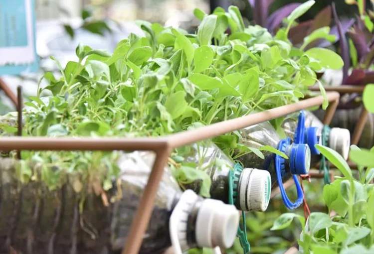 而这,只是虹旭小区垃圾分类上的“小窍门”之一。早在垃圾分类推行之初,利用小区的自治组织,虹旭小区就建设了一处特别的瓶子菜园,就在小区中心位置——居民们把家中不用的油桶、水桶改造成迷你菜园,培育出了各种各样的蔬菜。