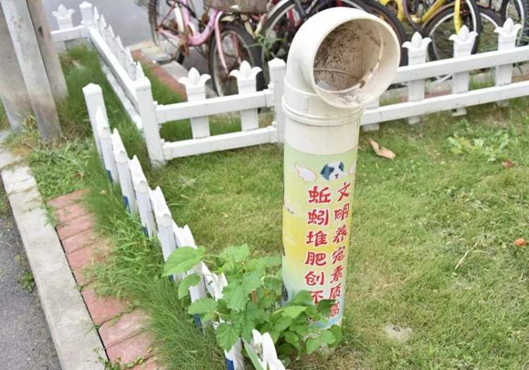 此外,区内还有16根蚯蚓堆肥塔,专门设置在宠物高频出现的地带,方便养宠居民将宠物粪便丢进管口,产生的有机肥也会用于小区绿化。