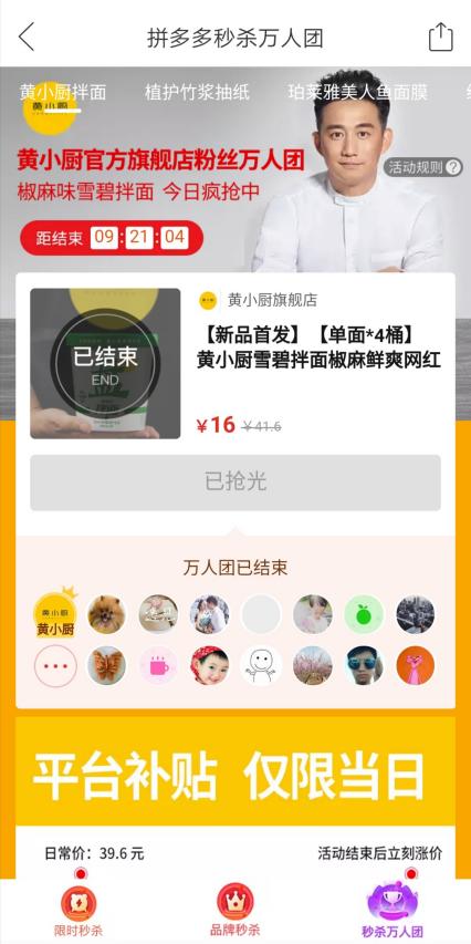 正是看到拼多多对“人的逻辑”的理解和“限时秒杀”频道的高人气,“黄小厨”将其“网红”产品椒麻味雪碧拌面的全网首发渠道放在了拼多多。