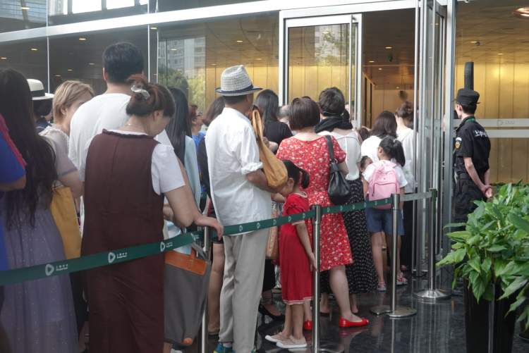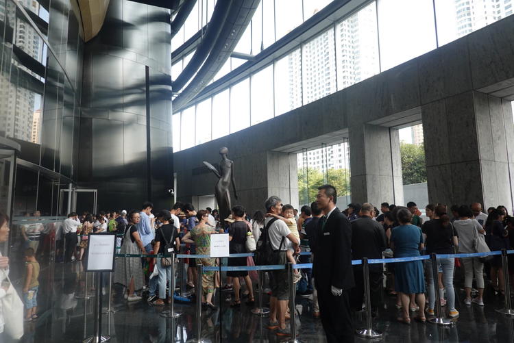 而在开业当天,人流量之高更是超乎读者和工作人员的估计——14:00正式开门,到15:30时,上海中心一楼办公入口的大厅已经排满了人。而在大厅排完了长队,还得去电梯边上排短队伍。
