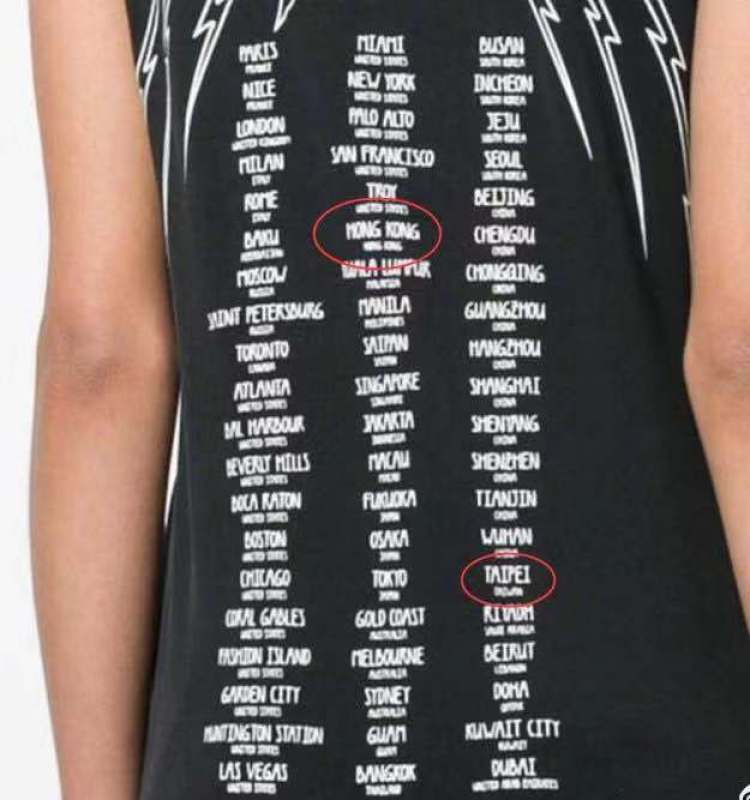 无独有偶,国际奢侈品牌纪梵希(GIVENCHY)也被网友发现其在海外发售的纪梵希印花T恤中将香港和台湾列为国家。