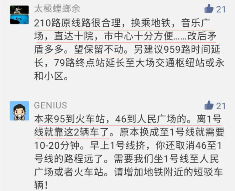周到君花了一番功夫整理留言内容,除却带有情绪的留言,还有一些市民的留言是十分理智的,讲清楚了属地、对比调整前后的方便程度,清楚地表达了对此次公交线路调整的意见和建议。