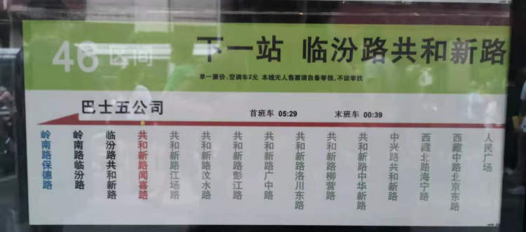 回程:由岭南路起经保德路、阳曲路、汾西路、共和新路、南北高架路、海宁路、西藏北路、西藏中路、武胜路。